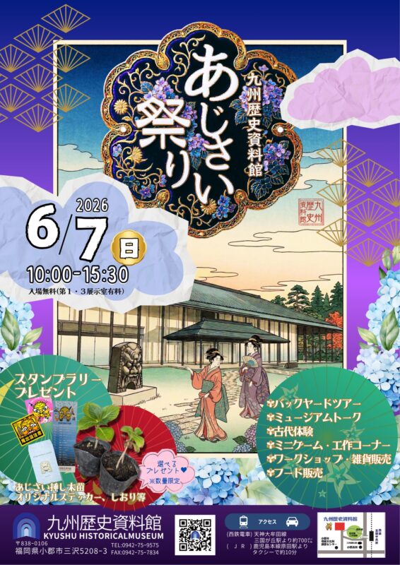 昨年初開催、今年で2度目となる「九州歴史資料館 あじさい祭り」を6月7日(日)10:00~15:30に開催いたします。